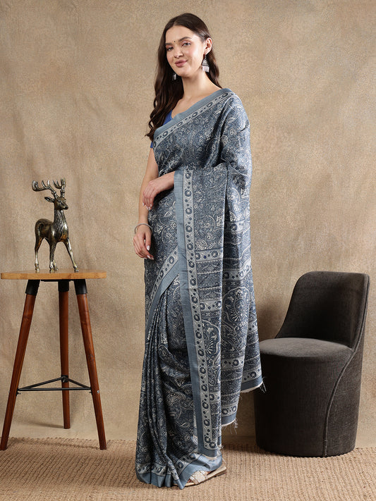 Designer Bagh printed Bhagalpuri Silk Saree