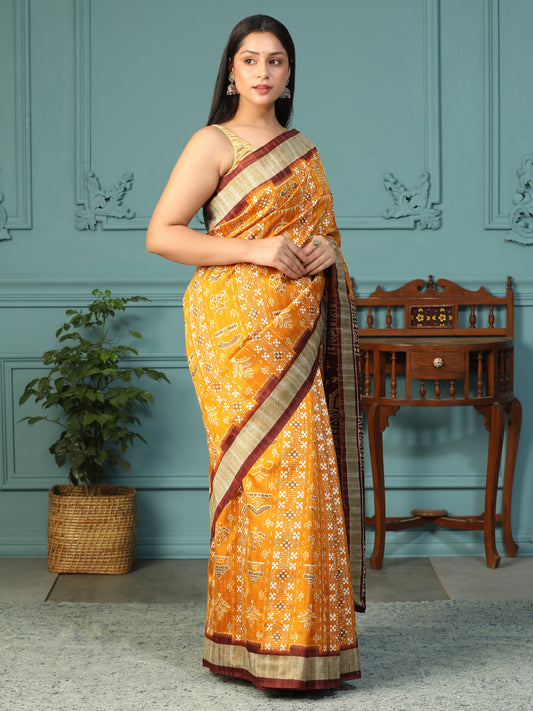 Designer sambalpuri warli printed Bhagalpuri Silk Saree